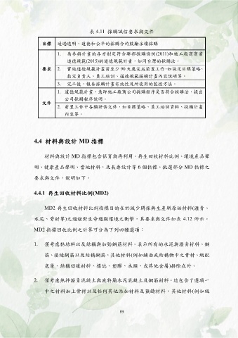 水泥、骨材等)之過程對生命週期環境之衝擊,其要求與文件如表 4.12 所示。