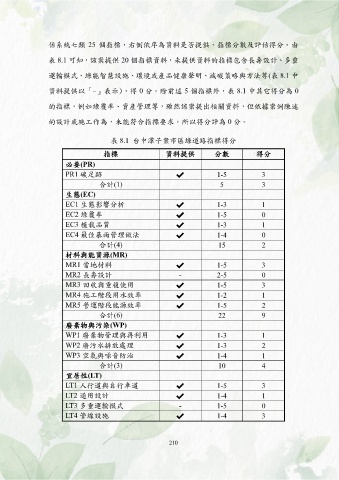 資料提供以「-」表示),得 0 分。除前述 5 個指標外,表 8.1 中其它得分為 0
