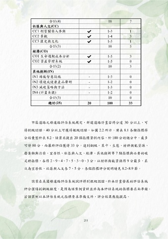 次為宜居性、社區與人文各 7、5 分。各個指標評分說明請見 8.2~8.9 節。
