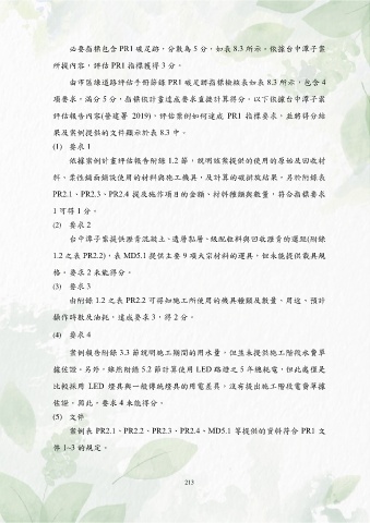 評估報告內容(營建署 2019),評估案例如何達成 PR1 指標要求,並將得分結