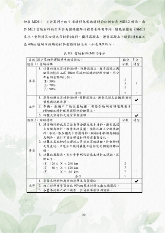 於 ME1 當地材料的計算與美國綠道路指標要求略有不同,因此依據表 8.8ME1
