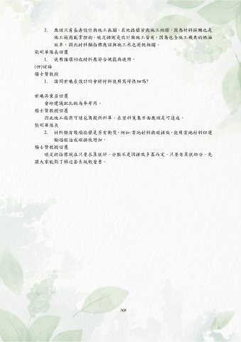 2. 材料類有幾項指標是否有衝突,例如:當地材料與碳排放,使用當地材料但運
