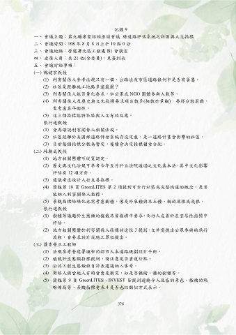 一、 會議主題:第九場專家諮詢座談會議 綠道路評估系統之社區與人文指標