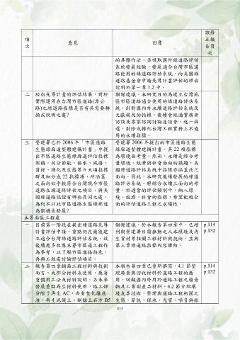 一 目前第一階段在提出綠道路先導 謝謝建議。於本報告第四章中,已增 p.114