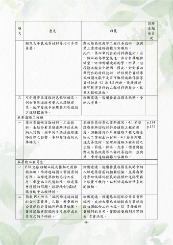 一 第四章簡略討論材料、工法技 本報告第四章已重新撰寫,4.1 節整 p.114
