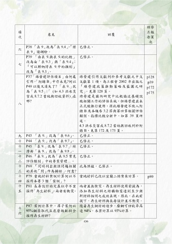 九 P43 「表 9.」改為「表 9.6」。 已修正。