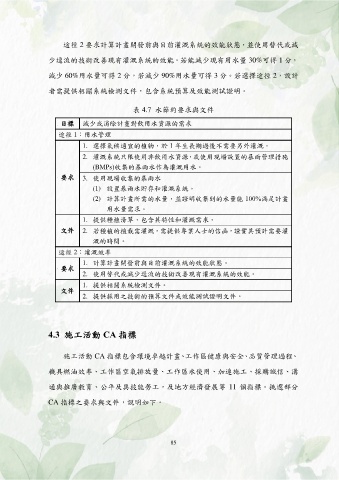 施工活動 CA 指標包含環境卓越計畫、工作區健康與安全、品質管理過程、